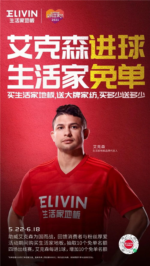目前,正值生活家地板全民戀家節(jié)期間,活動(dòng)主辦方推出了“買生活家地板,送大牌家紡,”鉅惠福利,買多少送多少,引得消費(fèi)者們紛紛“剁手”;除此,生活家地板還放送一波福利——“艾克森進(jìn)球,生活家免單”,助威艾克森為國足征戰(zhàn)。5月22日-6月18日期間購買生活家地板,抽取10個(gè)免單名額,四場出線賽,艾克森每進(jìn)一球,將增加10個(gè)免單名額。(注:免單金額以實(shí)際訂單金額為準(zhǔn),每單免單上限金額6666元;特價(jià)品及電商、家裝渠道不參與送家紡活動(dòng))。與此同時(shí),生活家地板也在微博平臺(tái)發(fā)起了為艾克森助力活動(dòng),關(guān)注并轉(zhuǎn)發(fā)置頂微博活動(dòng),就有機(jī)會(huì)獲得生活家地板送出的華為Mate40手機(jī)一臺(tái),10個(gè)幸運(yùn)名額,中獎(jiǎng)率高。
