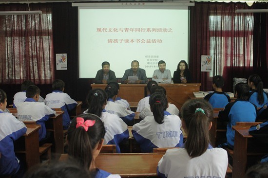 中國青年網(wǎng)北京9月5日電(記者李彥龍 通訊員劉保祥)今天上午,團(tuán)昭蘇縣委在縣曙光中學(xué)電教樓三樓多媒體會(huì)議室舉行“請(qǐng)孩子讀本書”大型公益活動(dòng)生活家《讀者》捐贈(zèng)儀式。昭蘇縣育英學(xué)校、曙光中學(xué)共計(jì)75名團(tuán)支部書記或班長、學(xué)習(xí)委員參加。