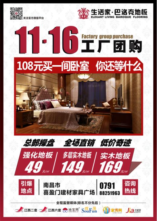 2013年10月18日至11月16日,生活家地板江西南昌工廠團(tuán)購大型活動(dòng)火熱進(jìn)行中,總部操盤,全場直銷,低價(jià)奇跡,精彩等你來!