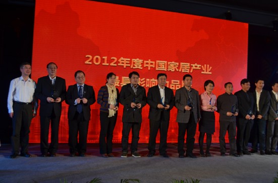 (生活家集團(tuán)董事長特別助理 李培新 [左起第二]接受"2012年度中國家居產(chǎn)業(yè)最具影響力品牌" 頒獎(jiǎng)儀式)