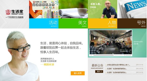 集合全新美食、旅行、家居等一體的欄目組合,名人專題的精彩推薦,快樂有趣的網(wǎng)絡互動……與生活為伍,與心靈想通。在這里,要闡釋的是一種積極、健康的生活態(tài)度,在這里,每個人都可以成為一位快樂的生活家。