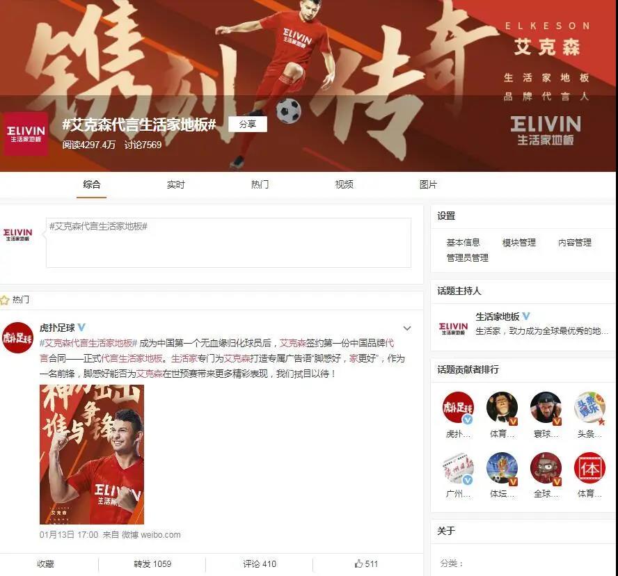 繼中國女足之后,2020年生活家攜手艾克森,再一次與體育結(jié)緣。“艾克森成為生活家地板代言人”、“給艾克森推薦年夜菜”雙話題成為今年生活家體育營銷話題的開端,艾克森作為中國足球歷史上首位非華裔歸化球員、中超多個賽季射手王,艾克森已經(jīng)代表國足出戰(zhàn)世預(yù)賽并打進多個進球,關(guān)注度和話題度齊飛。借助2020年春節(jié)的契機,艾克森以中國人的身份度過首個中國年,生活家邀請全國各地的網(wǎng)友給艾克森推薦年夜菜,這一話題溫度與熱度并存,助推代言官宣,“艾克森代言生活家地板”話題閱讀量突破4000萬。