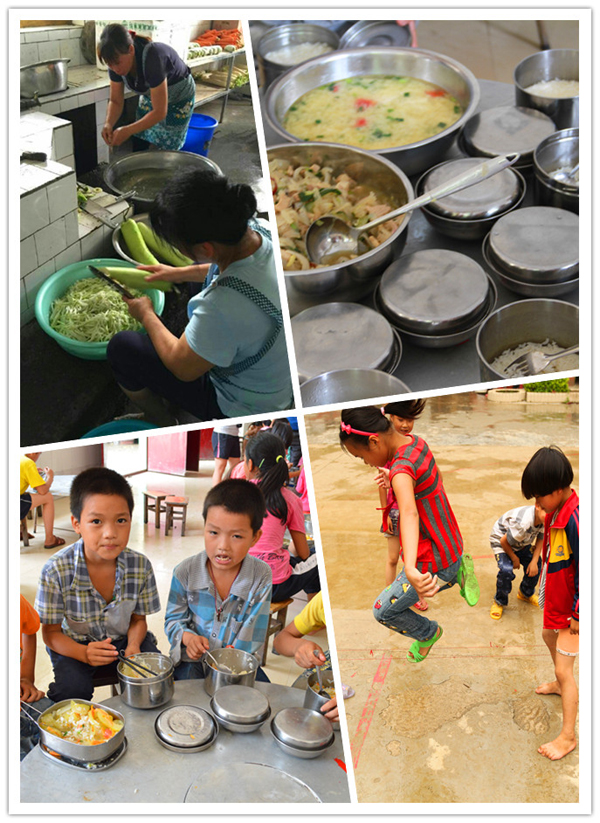 “饅頭的群山,翠綠的老樹,破漏的球板,換錢的蜈蚣,手搖的鈴聲,歡樂的游戲,忙碌的教工,大盆的菜肴,吃飯的少年”,志愿者胖洪如此表達(dá)對(duì)“給孩子加個(gè)菜”的印象。此圖文發(fā)到微博微信上馬上引發(fā)了70、80后們的集體回憶,他們?cè)诟锌疅o憂的少年時(shí)光同時(shí),更是關(guān)注貧困山區(qū)的孩子們健康快樂成長。