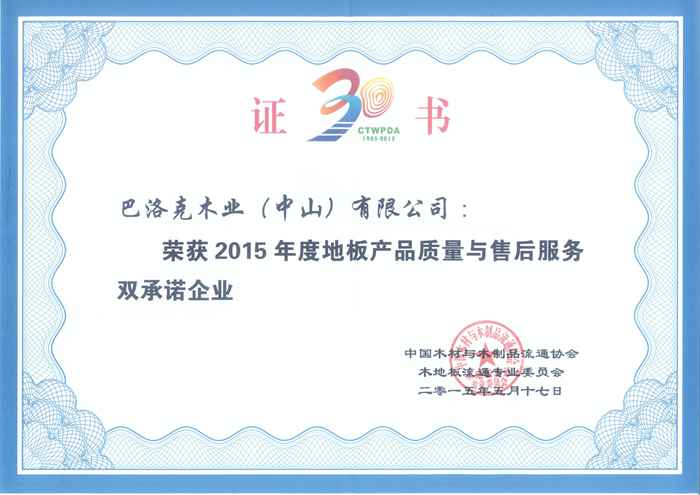 在剛剛舉行的“2015中國(guó)木材與木制品行業(yè)年會(huì)暨慶祝中國(guó)木材與木制品流通協(xié)會(huì)成立30周年大會(huì)”中,生活家地板再次以優(yōu)異表現(xiàn)躋身地板行業(yè)30家“雙承諾”艦隊(duì),除了連續(xù)第八次斬獲“地板產(chǎn)品質(zhì)量與售后服務(wù)雙承諾企業(yè)”獎(jiǎng)項(xiàng)外,并榮獲“中國(guó)木業(yè)30年突出貢獻(xiàn)企業(yè)”生活家地板總經(jīng)理林德英被評(píng)為“中國(guó)木業(yè)30年功勛人物”。