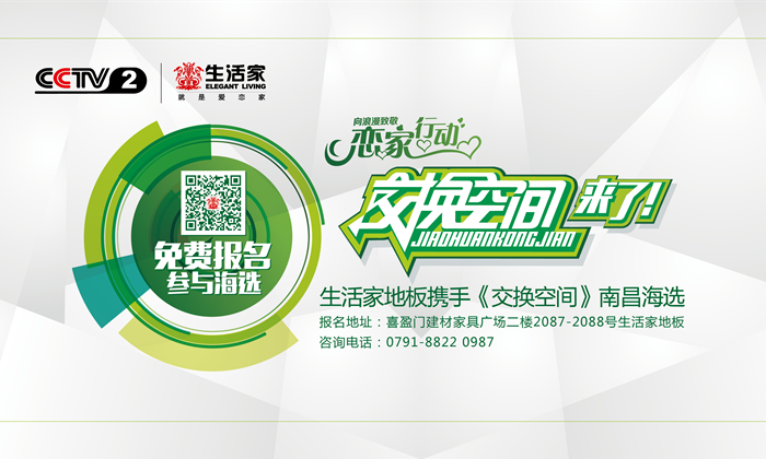 《交換空間》欄目是央視財(cái)經(jīng)頻道一檔著名的家裝服務(wù)類(lèi)節(jié)目,這次生活家地板通過(guò)與《交換空間》的合作將海選帶到南昌,生活家地板作為此次海選的獨(dú)家合作單位將全程參與其中。自從5月12日南昌城市海選啟動(dòng)后,目前已引發(fā)南昌各地區(qū)家庭廣泛關(guān)注,報(bào)名人數(shù)持續(xù)飆升!