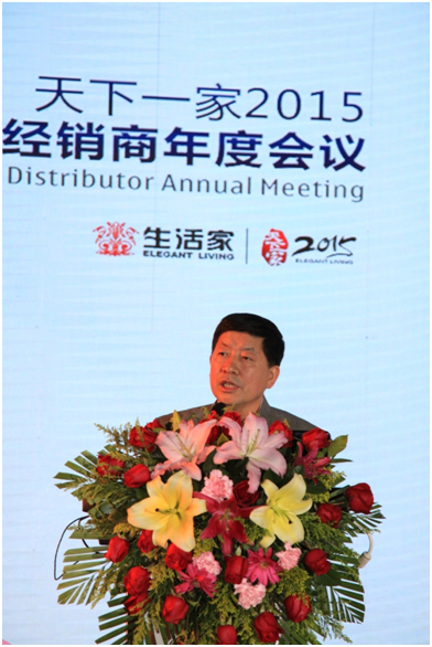 (生活家地板總經(jīng)理林德英在年會上發(fā)表講話)
