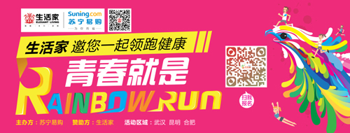 2014年9月27日,由蘇寧易購組織、生活家贊助的彩虹跑活動(dòng)分別在武漢、昆明正式開跑,兩地共有6000多名年輕人參與活動(dòng),與生活家一起激情“掛彩”,體驗(yàn)“地球上最快樂的5公里賽跑”。