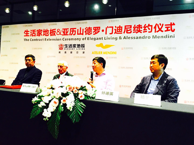(生活家地板總經(jīng)理林德英與亞歷山德羅·門迪尼簽訂合作協(xié)議)