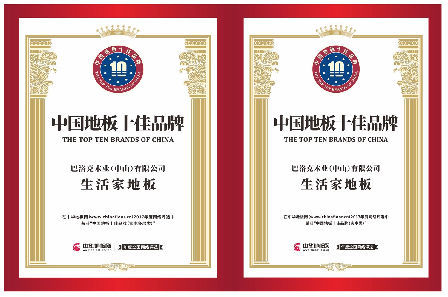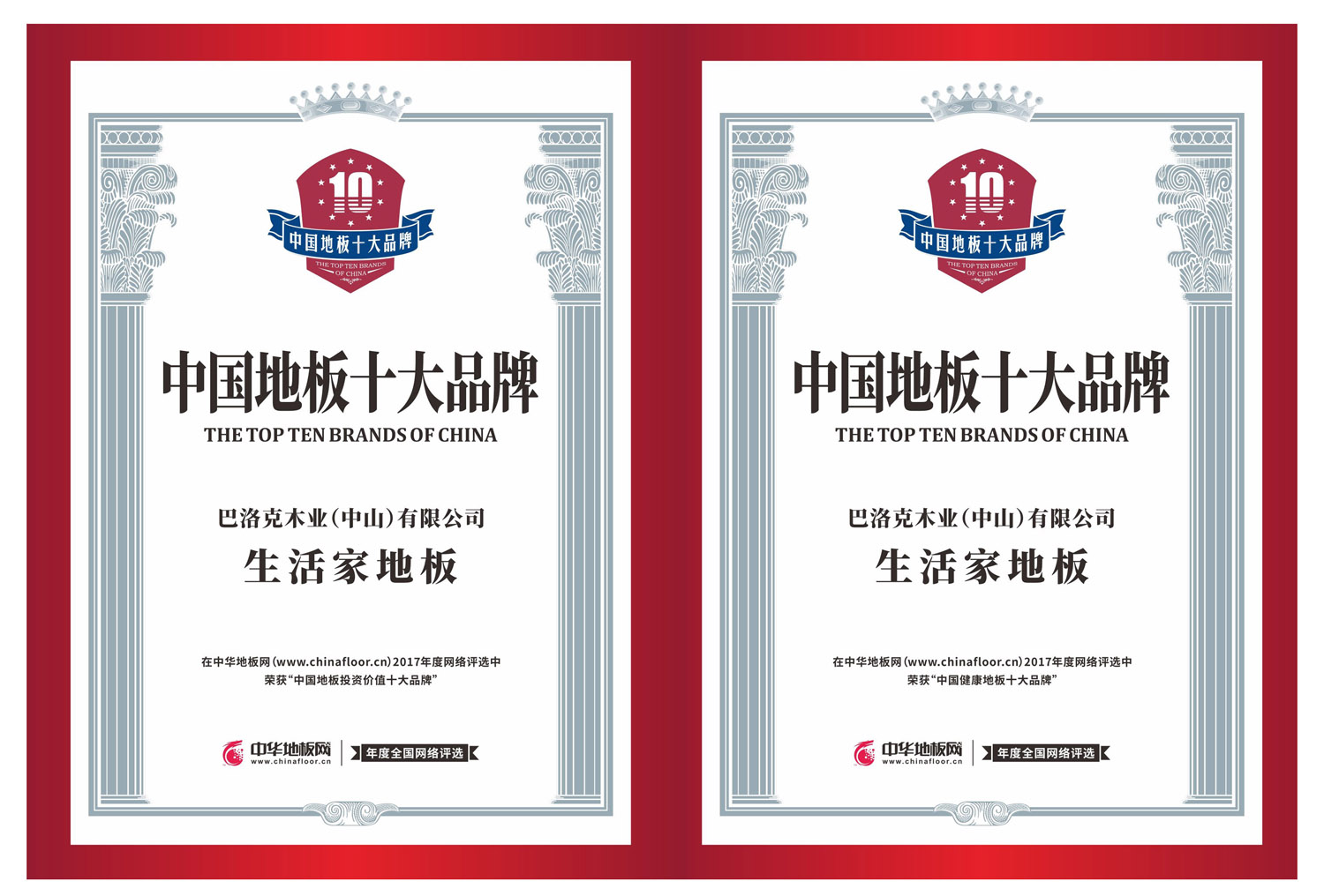 歷年來(lái)舉辦的“中國(guó)地板十佳品牌、中國(guó)地板十大品牌”全國(guó)網(wǎng)絡(luò)評(píng)選活動(dòng),見(jiàn)證著中國(guó)地板行業(yè)的榮耀。2017年經(jīng)過(guò)兩個(gè)月激烈的票選與評(píng)審階段過(guò)后,生活家憑借自身雄厚的實(shí)力以及在行業(yè)內(nèi)深遠(yuǎn)的品牌影響力,一舉獲得“中國(guó)地板十佳品牌(實(shí)木多層類(lèi))”、“中國(guó)地板十佳品牌(實(shí)木類(lèi))”、“中國(guó)地板十大品牌(中國(guó)地板投資價(jià)值十大品牌)”、中國(guó)地板十大品牌(中國(guó)健康地板十大品牌)”四大獎(jiǎng)項(xiàng)。這是生活家地板連續(xù)九年榮登榜單。