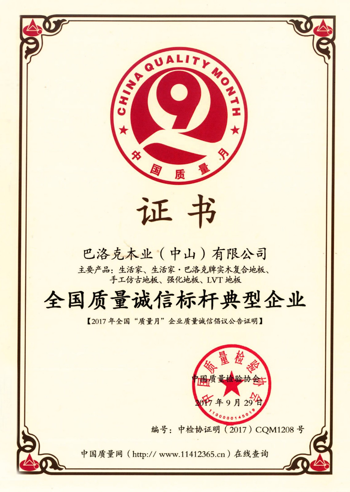 近日,由國(guó)家質(zhì)檢總局聯(lián)合中共中央宣傳部、國(guó)家發(fā)改委等47個(gè)相關(guān)部門(mén)、行業(yè)協(xié)會(huì)等單位共同在2017年9月開(kāi)展“大力提升質(zhì)量,建設(shè)質(zhì)量強(qiáng)國(guó)”為主題的2017年全國(guó)“質(zhì)量月”活動(dòng)中,生活家地板獲“全國(guó)質(zhì)量誠(chéng)信標(biāo)桿典型企業(yè)”殊榮。