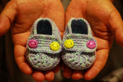 媽媽的手很巧,織毛衣、做手工花等等,這是媽媽做的鞋,給即將出生的孫女,是不是特別可愛?。?