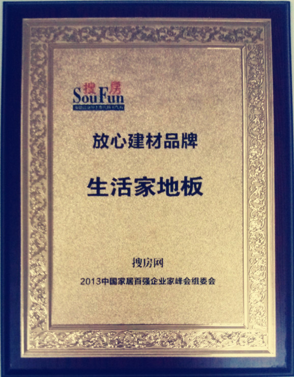 2013年6月27日,由中國指數(shù)研究院發(fā)起的“2013中國家居產(chǎn)業(yè)百強企業(yè)研究成果發(fā)布會暨第五屆中國家居產(chǎn)業(yè)百強企業(yè)家峰會”在北京釣魚臺大酒店隆重舉辦。會上集2013中國家居產(chǎn)業(yè)百強研究各項成果發(fā)布為一體,旨在為中國家居產(chǎn)業(yè)的持續(xù)健康發(fā)展做出引導(dǎo)。在此次發(fā)布的報告成果中,生活家地板在眾多參與的建材品牌中脫穎而出,榮獲“2013放心建材品牌”獎。