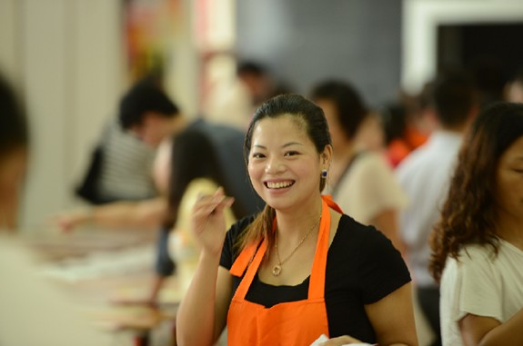 點(diǎn)評(píng):橙色的圍裙配上專業(yè)的服務(wù),潔白的牙齒配上燦爛的笑容,儼然造就了這樣一位美麗而熱情的女導(dǎo)購(gòu)。在生活家地板南京8.25某大型地板展銷會(huì)的現(xiàn)場(chǎng)上,一位出色的女導(dǎo)購(gòu)用最美麗的笑容感染了我們的攝影師,也溫暖了我們的消費(fèi)者。
