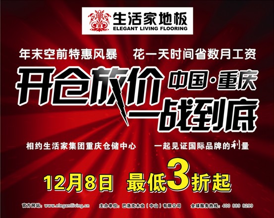 【產(chǎn)品專題】:生活家地板年末鉅惠,回饋新老顧客,為60,70,80后顧客的又添驚喜,我們在活動現(xiàn)場也將最終把價格放到6?,7?,8?,一放到底。生活家地板擁有70后要求的高端品質(zhì),80后想要的超高性價比,同樣擁有90后追求的個性化,相約12.08品質(zhì)、優(yōu)惠、個性等你拿!您的滿意是我們終身的追求!